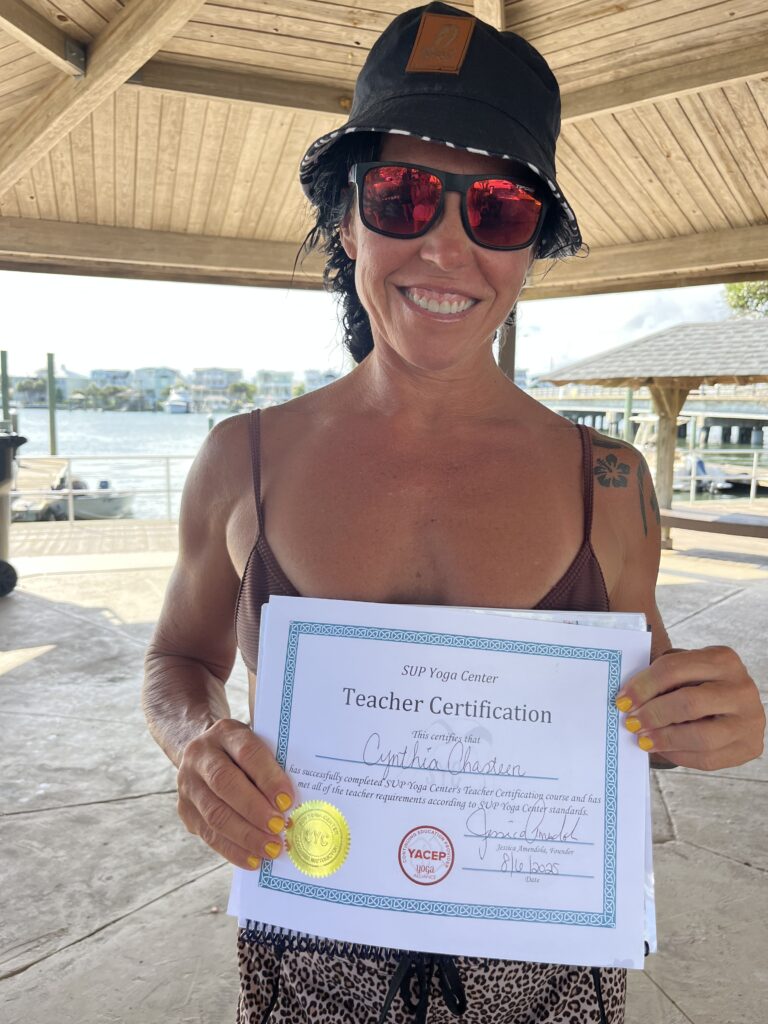 C3 Standup Paddle Board (SUP) Yoga is a floating yoga studio. The founder and CEO Cynthia Chasteen has always loved the beach and ocean and has studied and led yoga classes for more than 10 years. SUP Yoga is a blend of two of her favorite things, so she decided to launch C3 SUP Yoga to share her passions!